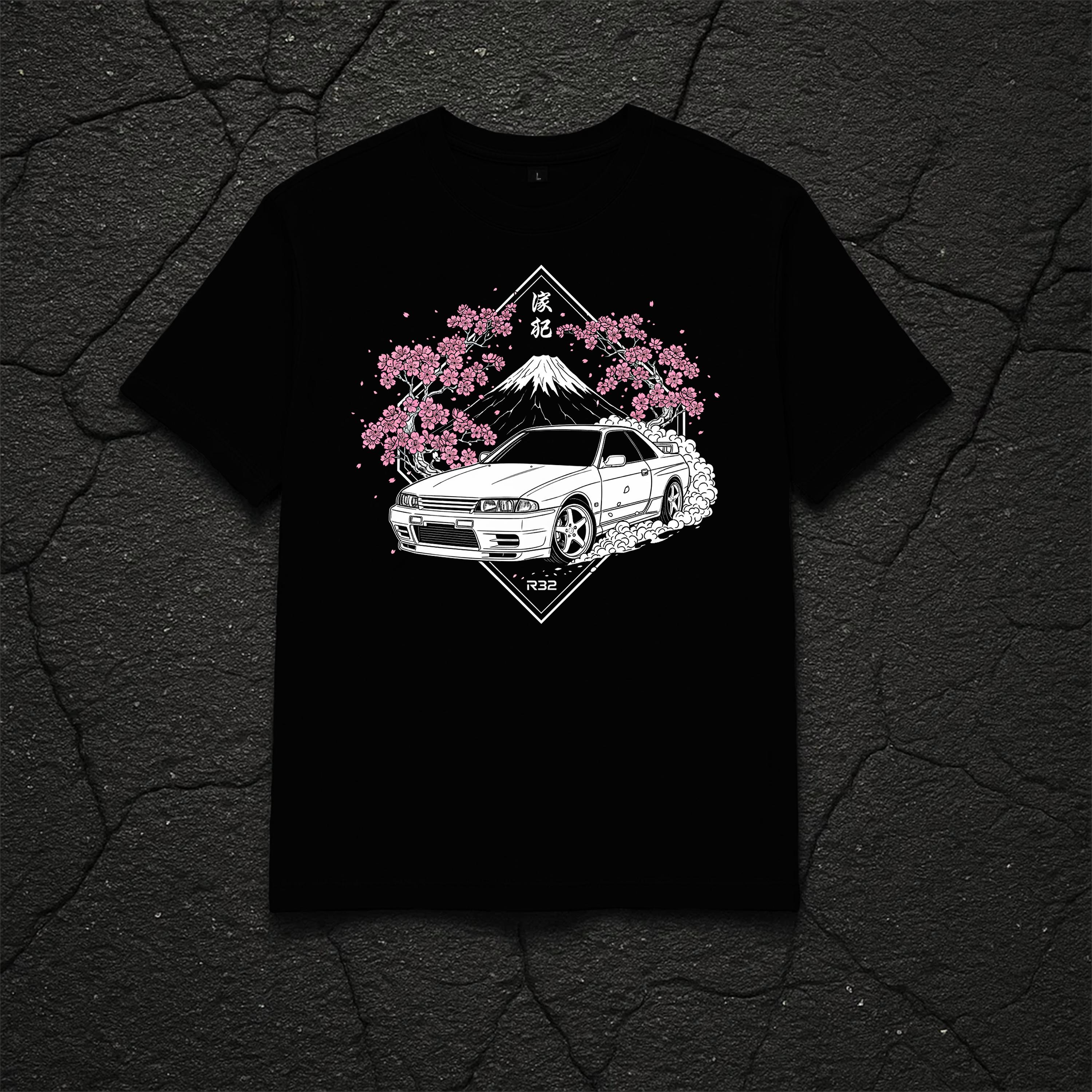 Rev up your style with the Skyline R32 Black Car T-Shirt - a perfect blend of JDM passion and Japanese elegance. This oversized, unisex graphic tee is designed for car lovers who live for that redline rush and appreciate the beauty of high-performance machines. Featuring a striking design inspired by the iconic Nissan Skyline R32, complete with cherry blossoms, Mount Fuji, and racing attitude, this shirt celebrates the art of Japanese automotive culture.