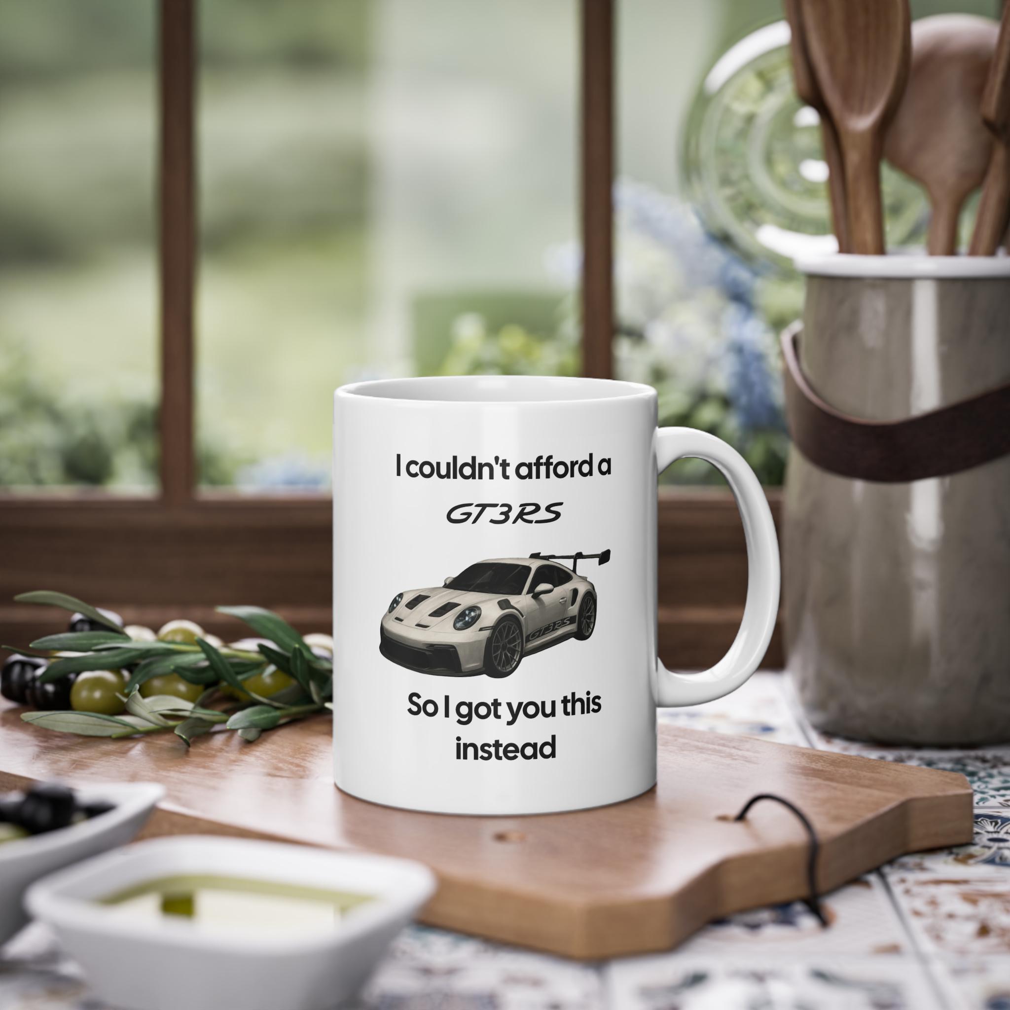 Start your day with a dash of humor and a whole lot of car culture pride with this GT3 RS Ceramic Coffee Mug. Perfect for auto enthusiasts, gearheads, and weekend tinkers, this 11oz mug combines playful personality with practical durability. Featuring a bold full-wrap print of a stylish Porsche GT3 RS illustration and a cheeky message that reads "I couldn't afford a GT3 RS, so I got you this instead," it’s a fun way for car lovers to celebrate their passion every morning.